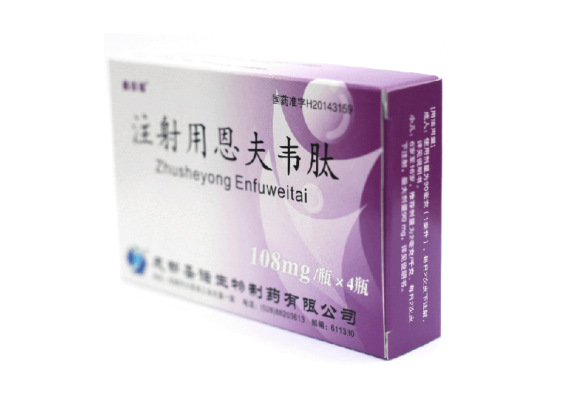 注射用恩夫韋肽使用前需要以無菌注射用水溶解,然后皮下注射給藥。如果溶解后不能立即使用,必須保存于2--8℃冰箱中,并在24小時(shí)內(nèi)使用。冷藏的溶液注射前必須加熱至室溫(例如握在手中5分鐘),并且注射前應(yīng)檢查確保溶液完全溶解,沒有顆粒物。